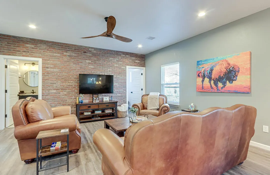 This Afton property includes an outdoor dining area with a fridge, an oven, and kitchenware. The bar The Shebang is located 10 minutes away by car and serves American dishes. Guests can easily reach Joplin Regional airport, located 105 km from the 2-bathroom villa.